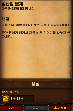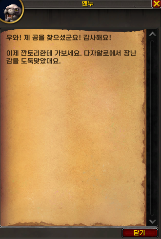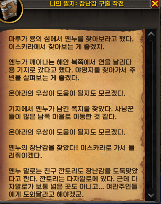 퀘스트를 완료하니 [최후의 장난감] 퀘스트를 받았습니다.