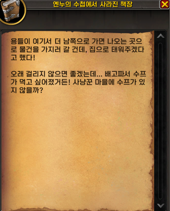 여기서 더 남쪽으로 갔다고 하고, 사냥꾼 마을의 수프를 이야기합니다.