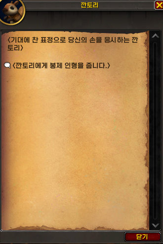 깐토리에게 말을 거니 나의 일지가 업데이트되었어요.