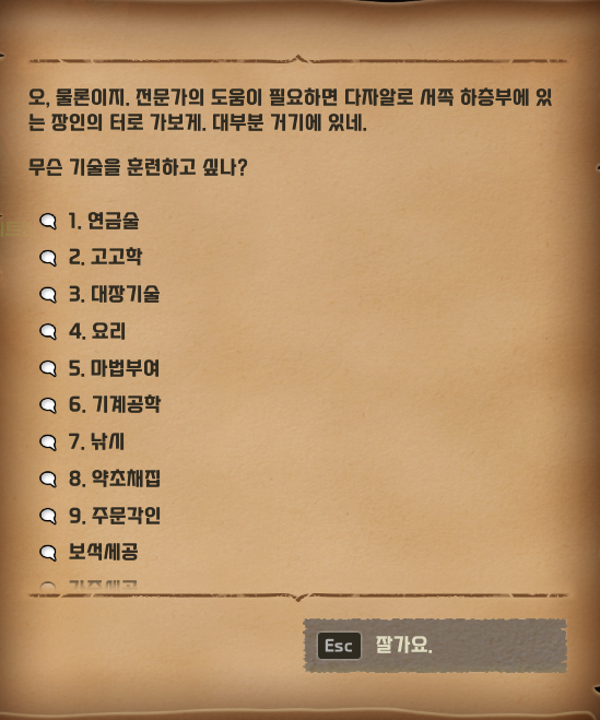 다만 모든 대도시에서 배울 수 있는 요리와 낚시와는 다르게,